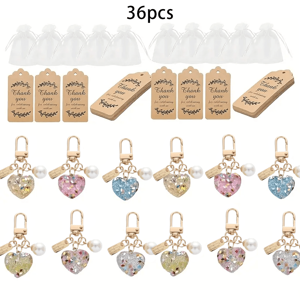 36 Pcs Acrylic Heart Keychain Set, Glitter Love Keychains Bulk with ...