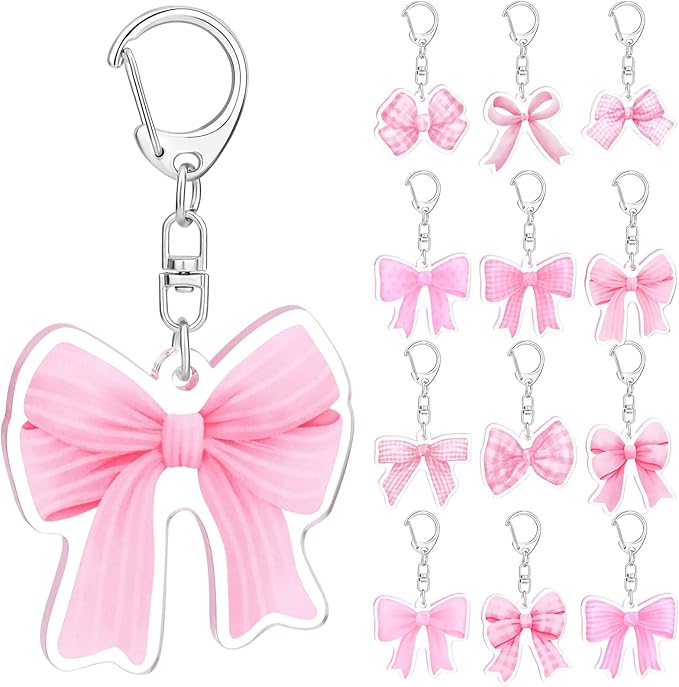 Amazon.com: Sanixin 24 Pcs Pink Bow Party Favors Acrylic Bow KeyChains ...