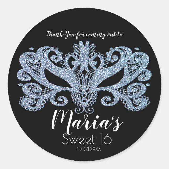 Glitter Blue Masquerade Mask Party Favor Classic Round Sticker | Zazzle