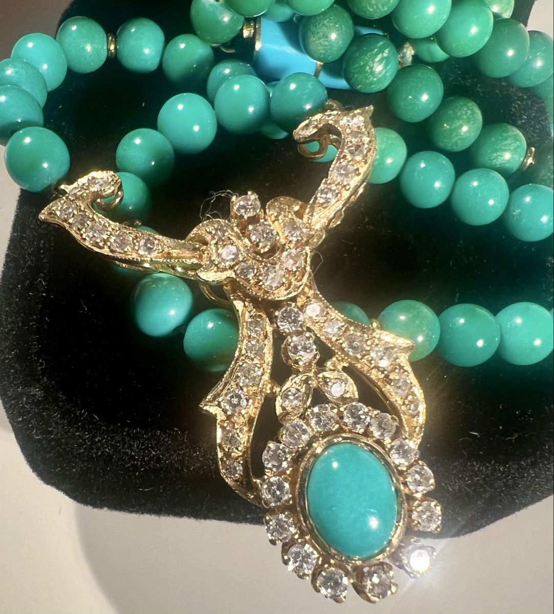 Parure or 18 ct turquoises et diamants taillés vintage 50s (Neu (gemäss ...