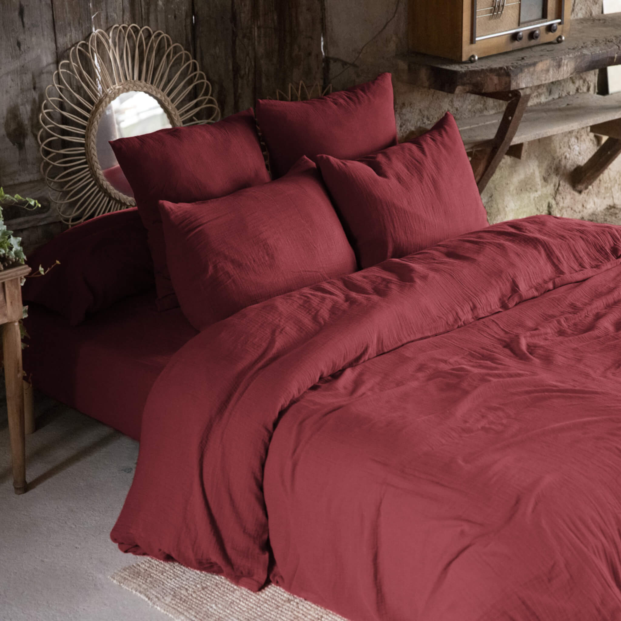 Parure de lit double gaze de coton bordeaux 240x220 cm | Leroy Merlin