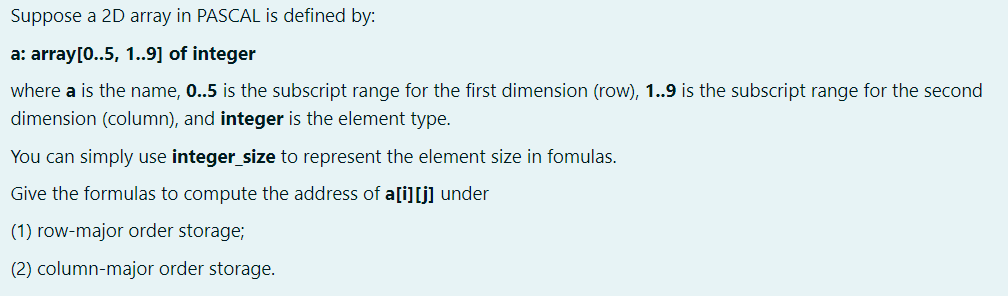 Solved Suppose a 2D array in PASCAL is defined by: a: | Chegg.com