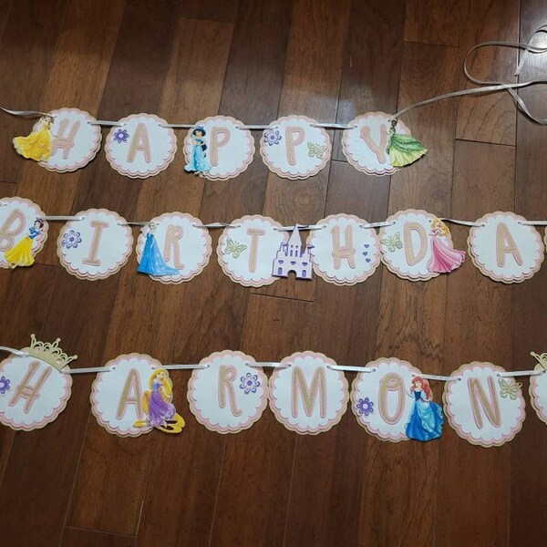 Rapunzel Birthday Party Banner With Pink and Purple Flowers, Glitter ...