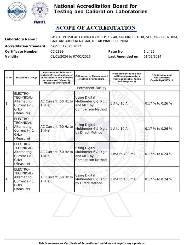 PASCAL PHYSICAL LABORATORY - Instrument Calibration Service ...