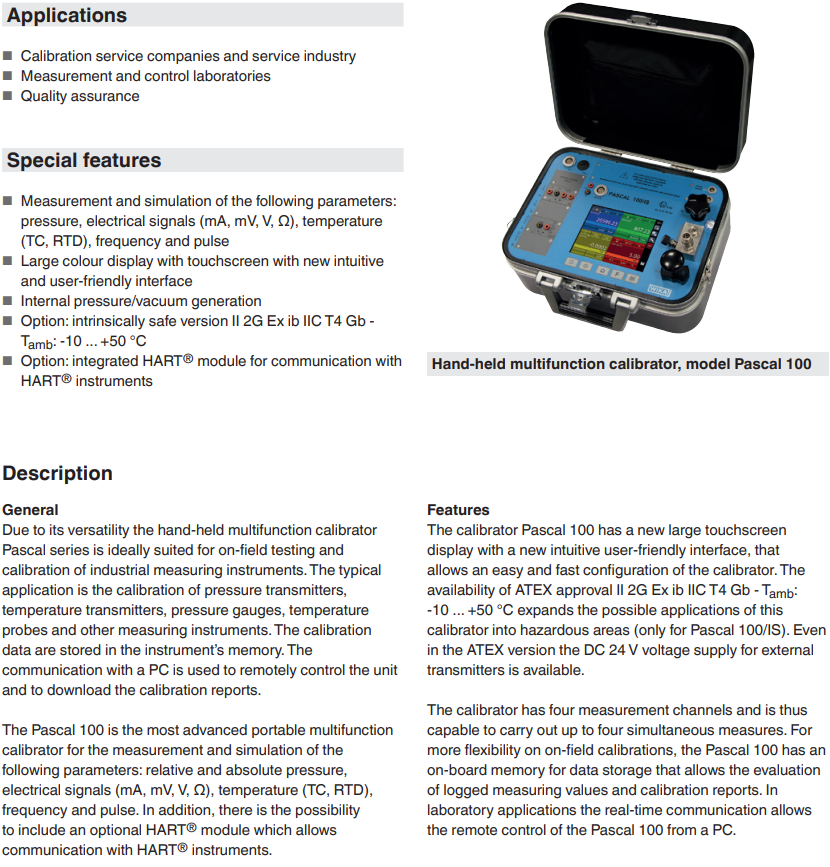 Pascal 100-Wika-Hand-held multifunction calibrator, Germany - CTY ATES ...