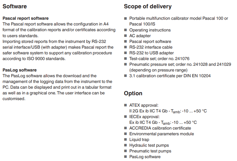 Calibratore multifunzione portatile Modelli Pascal 100, Pascal 100/IS