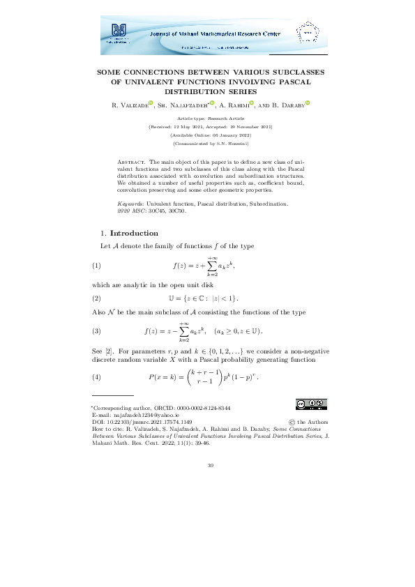 (PDF) Subclass of Analytic Functions Related with Pascal Distribution ...