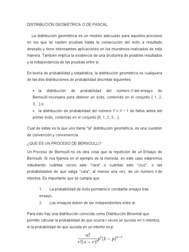 Distribución Geométrica o de Pascal | PDF | Probabilidad | Distribución ...