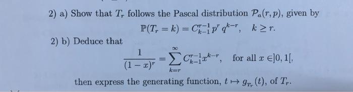 2) a) Show that Tr follows the Pascal distribution | Chegg.com