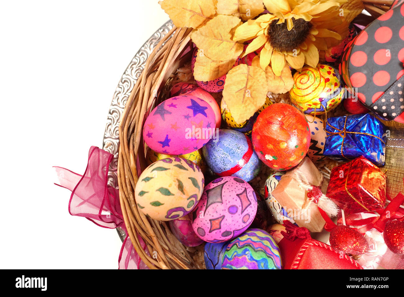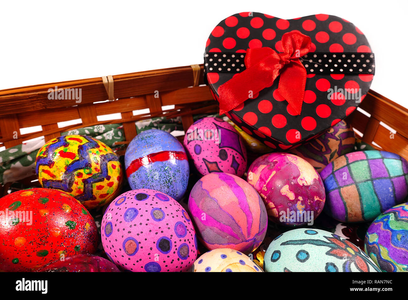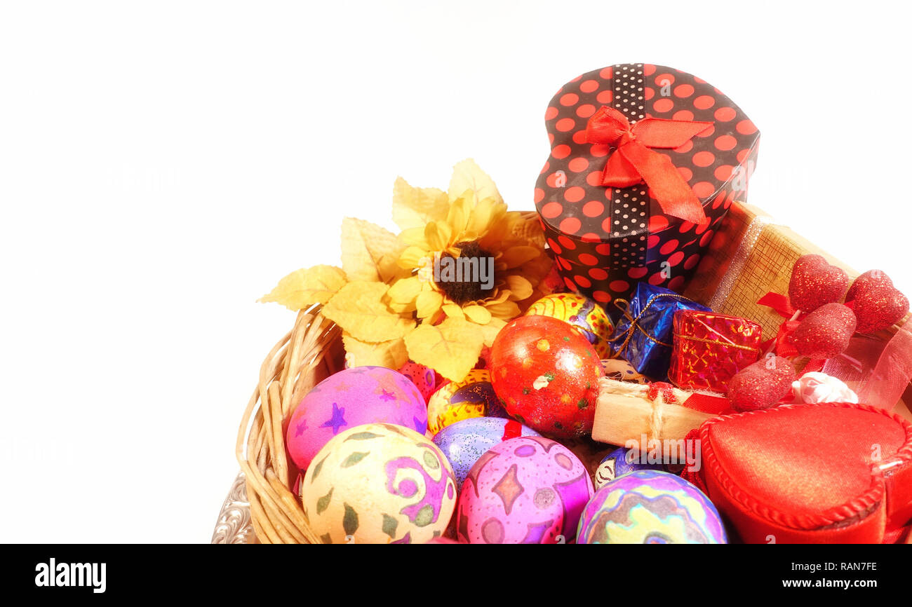 Colorful Paschal Easter Eggs in Heart Basket Celebration Traditional ...