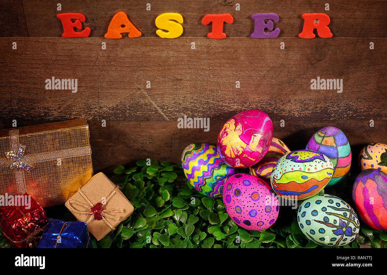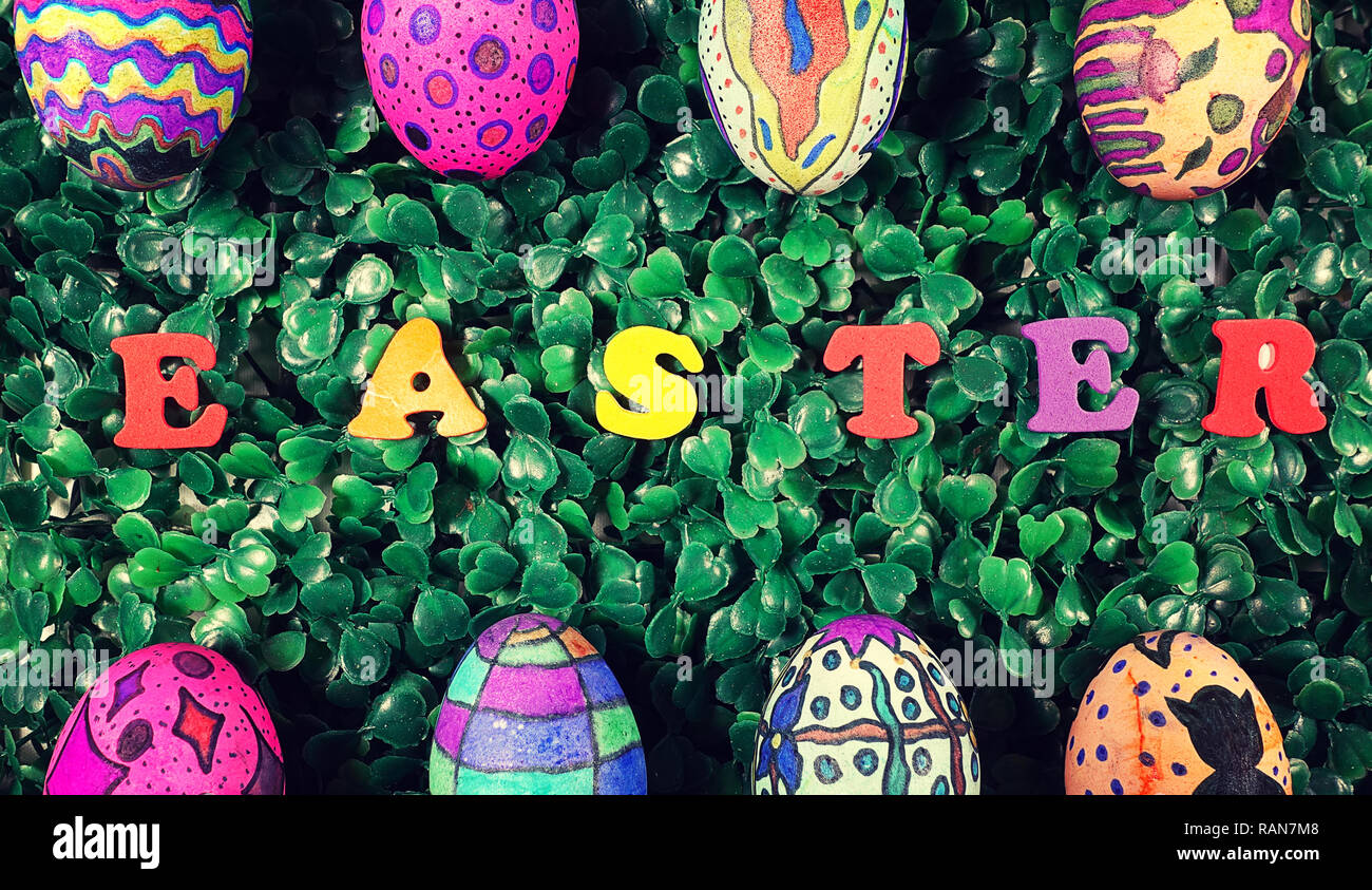 An easter composition made with paschal eggs and a "Happy Easter ...