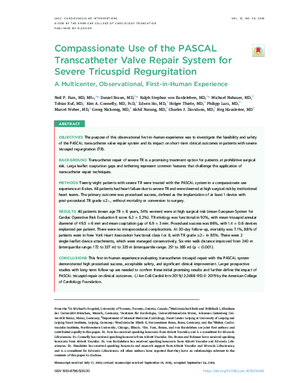 (PDF) Compassionate Use of the PASCAL Transcatheter Valve Repair System ...