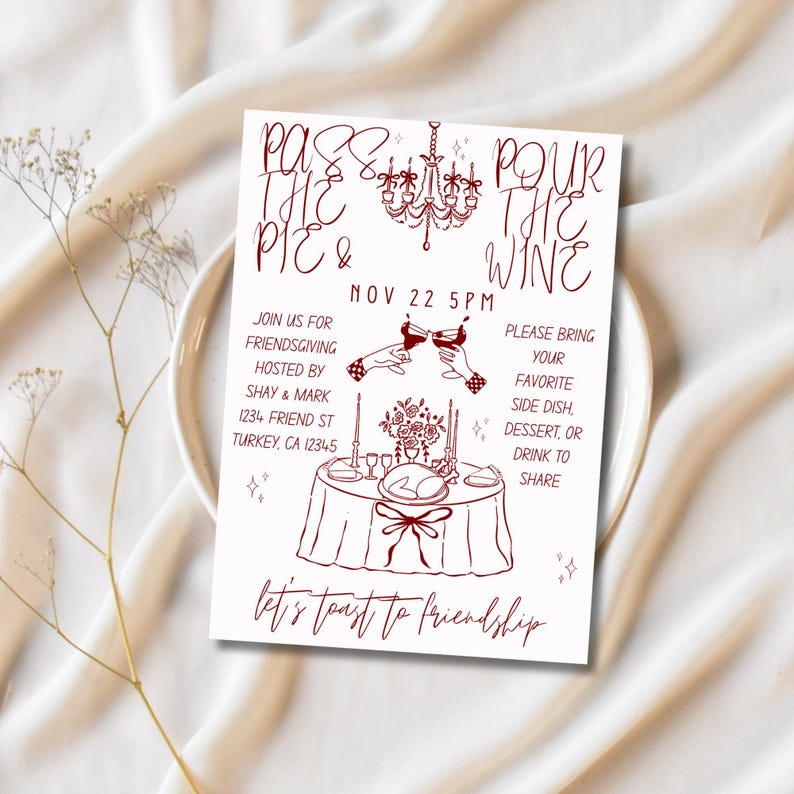 Friendsgiving Invitation, Pass the Pie Pour the Wine, Fall Dinner Party ...