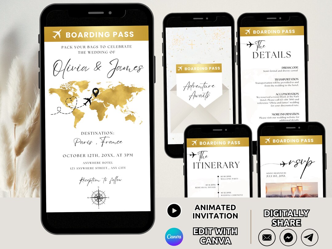 Animated Boarding Pass Wedding Invitation Video Template, Digital ...