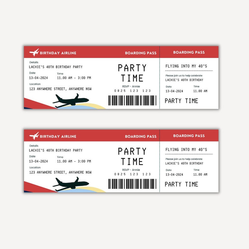 Airline Birthday Party Boarding Pass Invitation Ticket - Digital ...