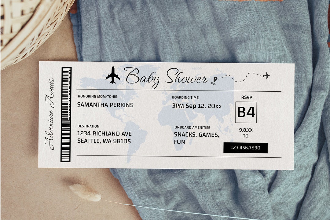 Editable Airplane Baby Shower Invitation Boarding Pass Ticket Invite I ...