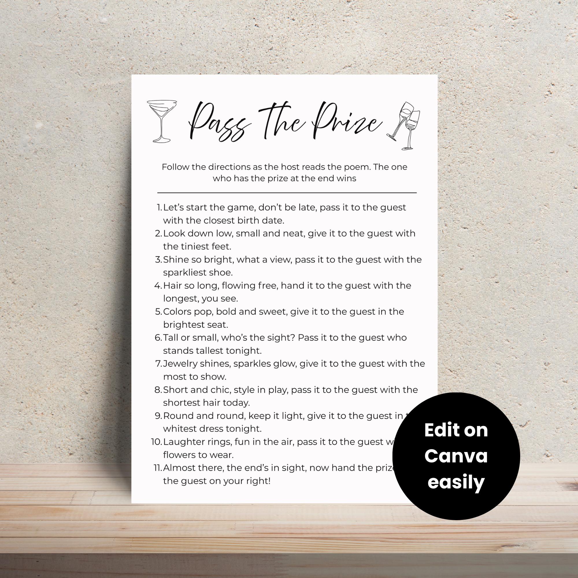 Pass the Prize Bridal Shower Game Pass the Gift Bachelorette Party Game ...