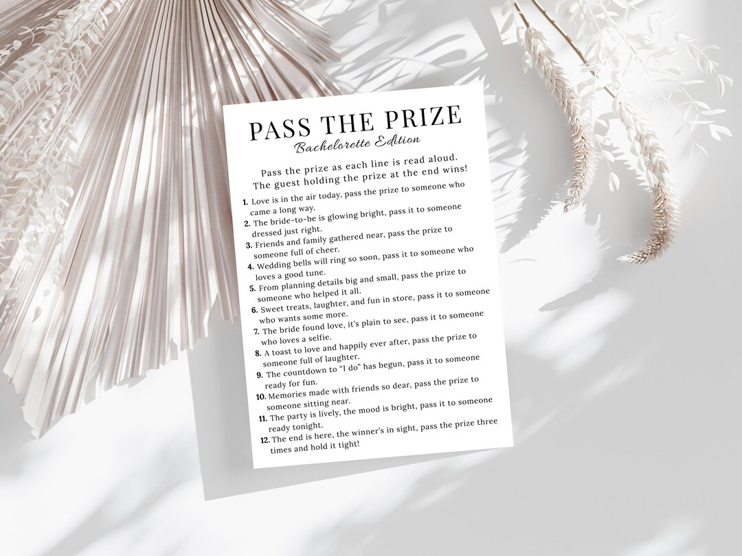 Pass the Prize Bachelorette Game, Minimal Bridal Shower Activity ...