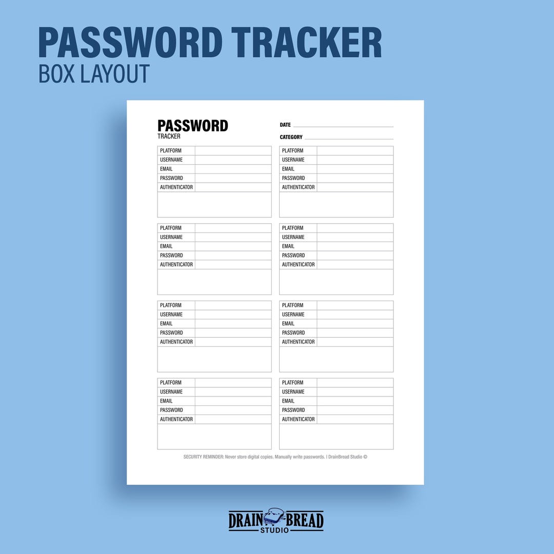 Password Tracker Box Layout With Authenticator | Letter / A4 ...