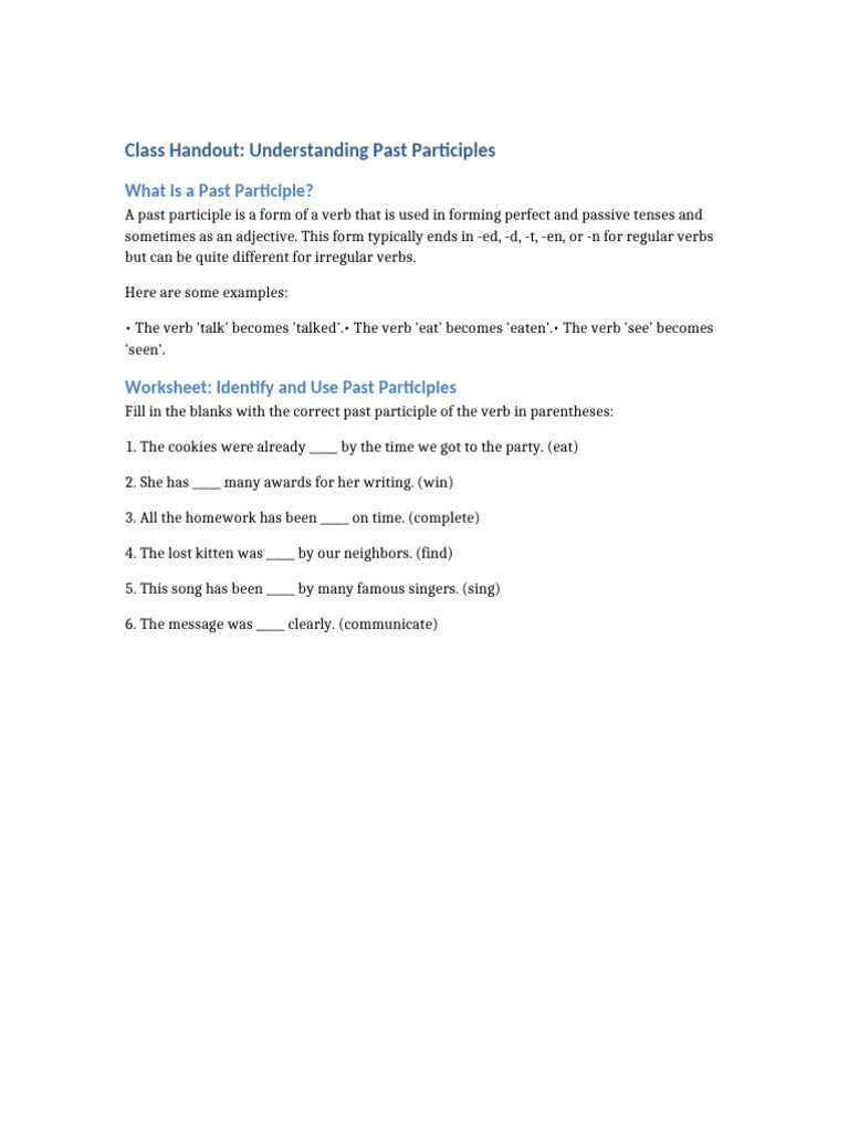 17 Past Participle Verbs Worksheets - Free PDF at worksheeto.com
