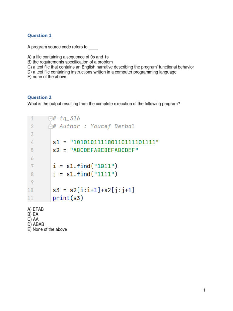 Sample Questions - Past Tests | Download Free PDF | Computer Program ...