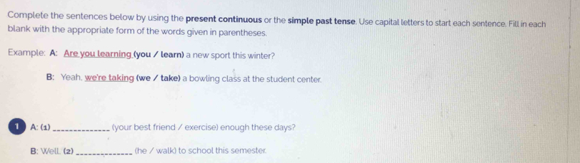 Complete the sentences below by using the present continuous or the ...