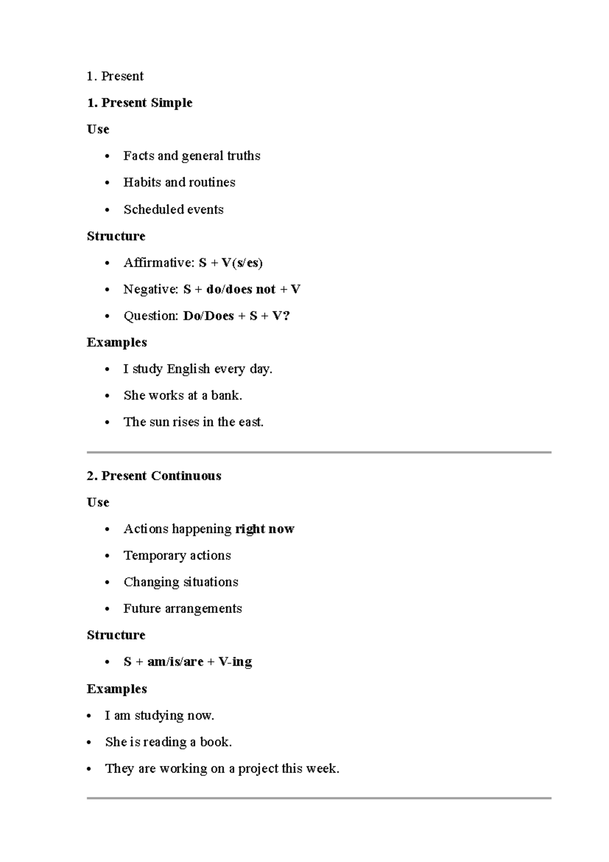 Tenses Overview: Present, Past, and Future Structures and Uses - Studocu