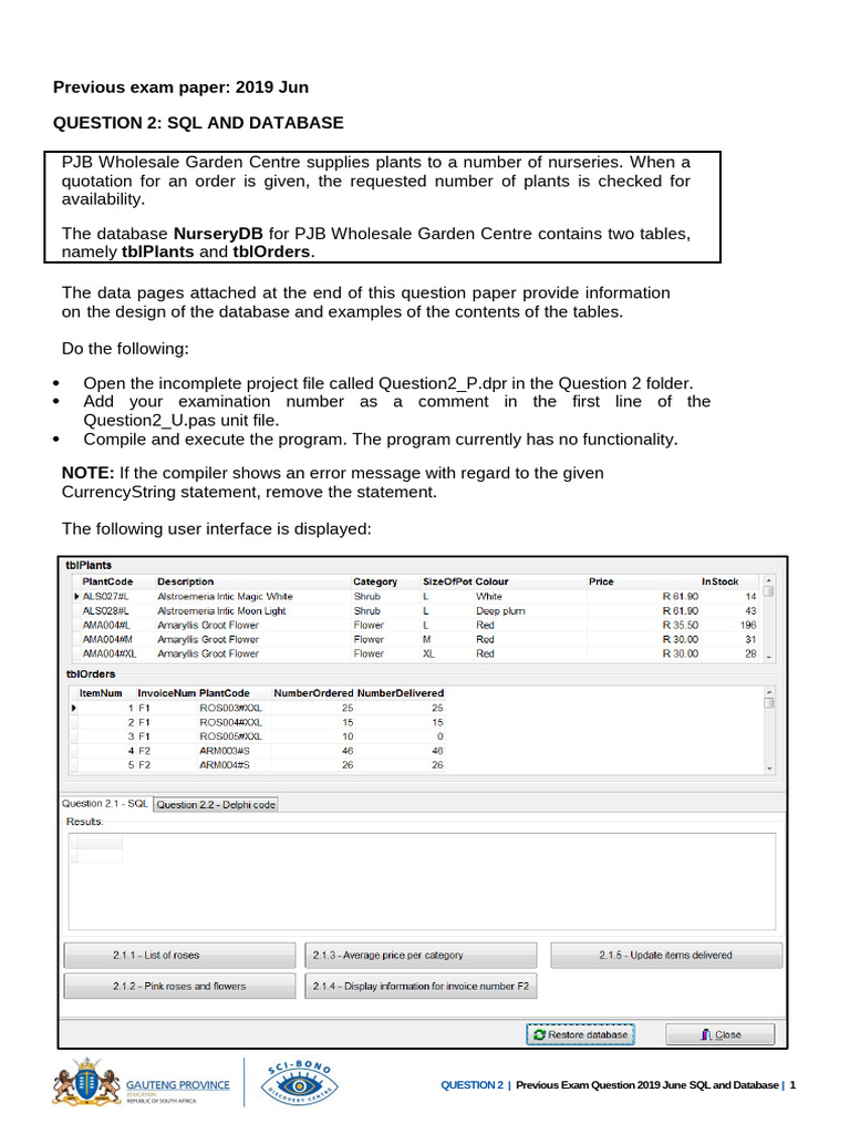 Database past paper with SQL | PDF | Databases | Sql