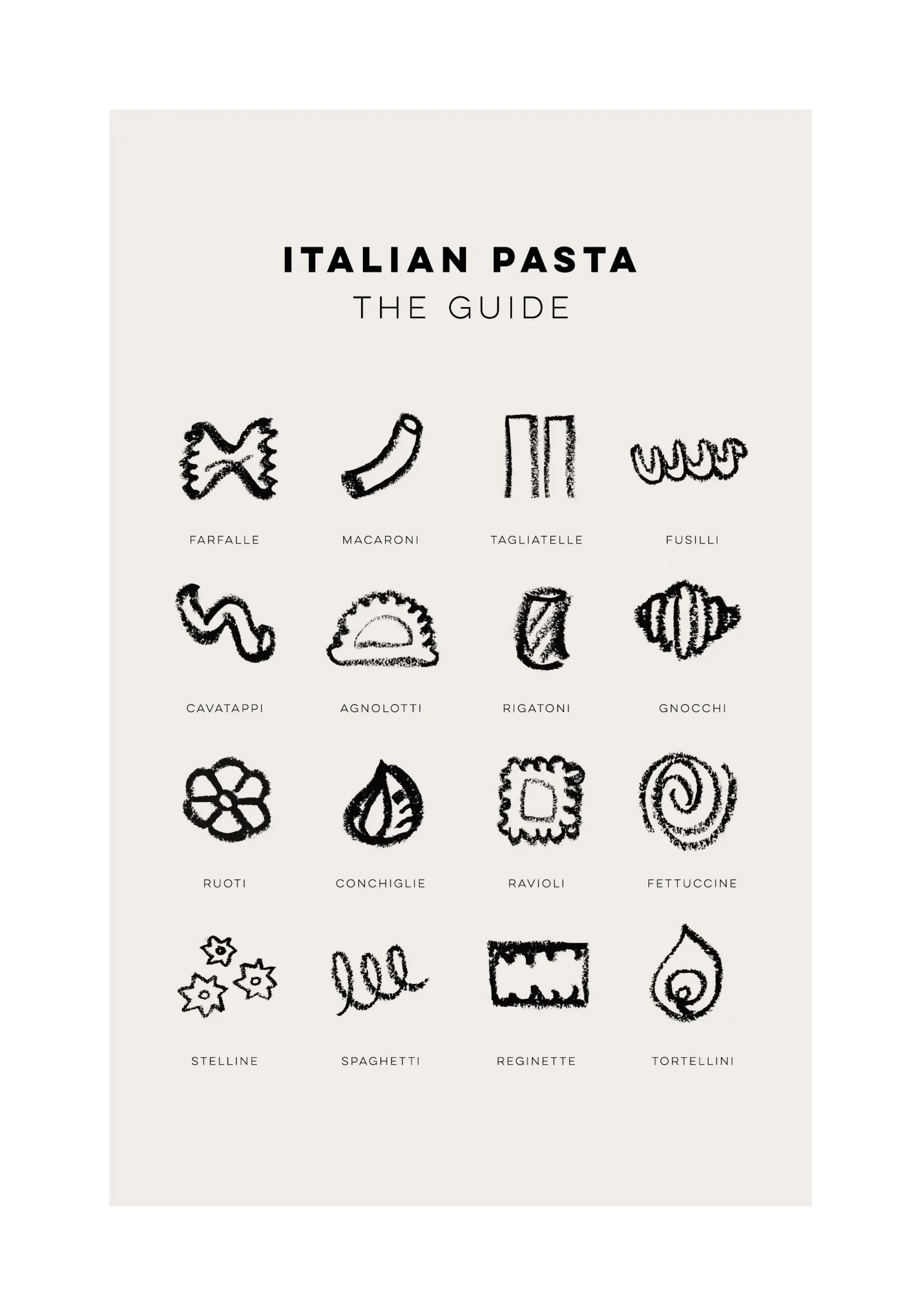 Pasta Guide Poster - Pastaillustration - desenio.se