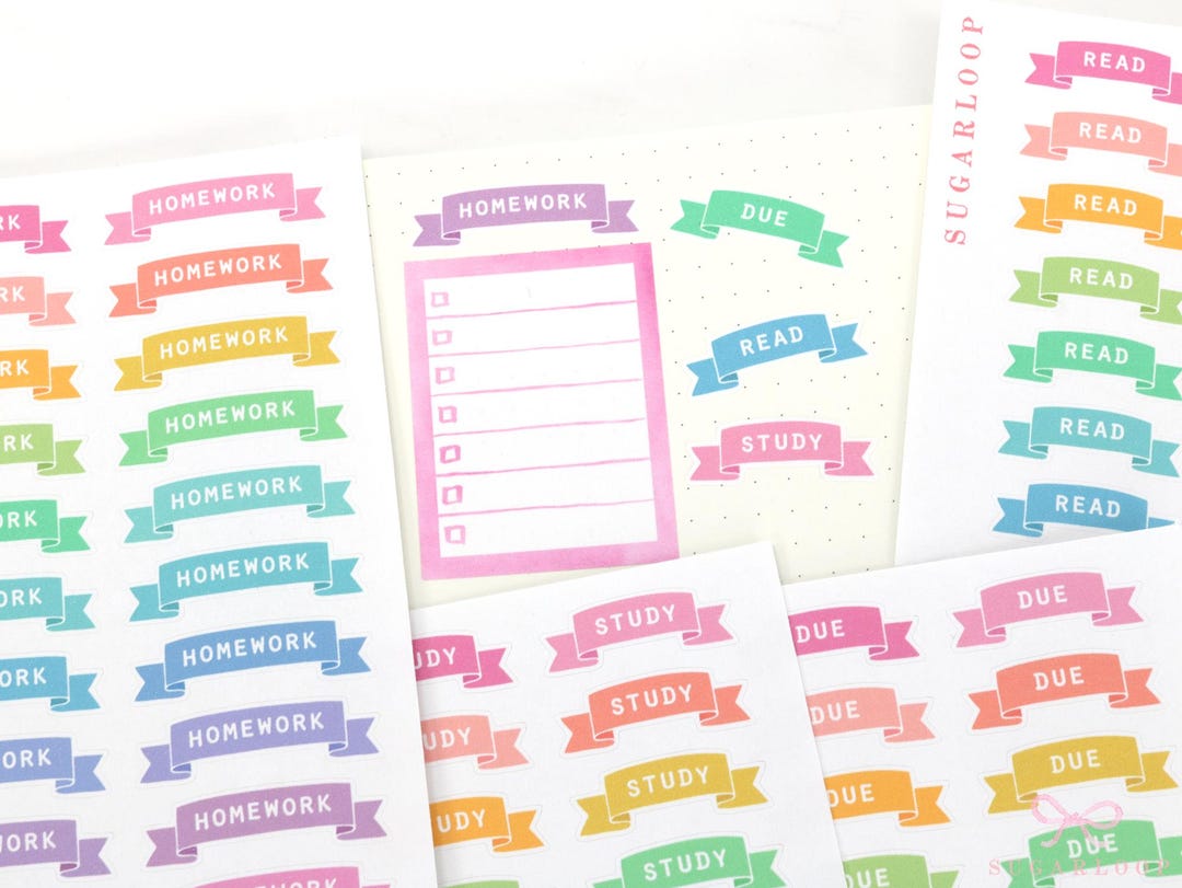 Homework Banner Stickers for Planners & Journals: Pastel - Etsy