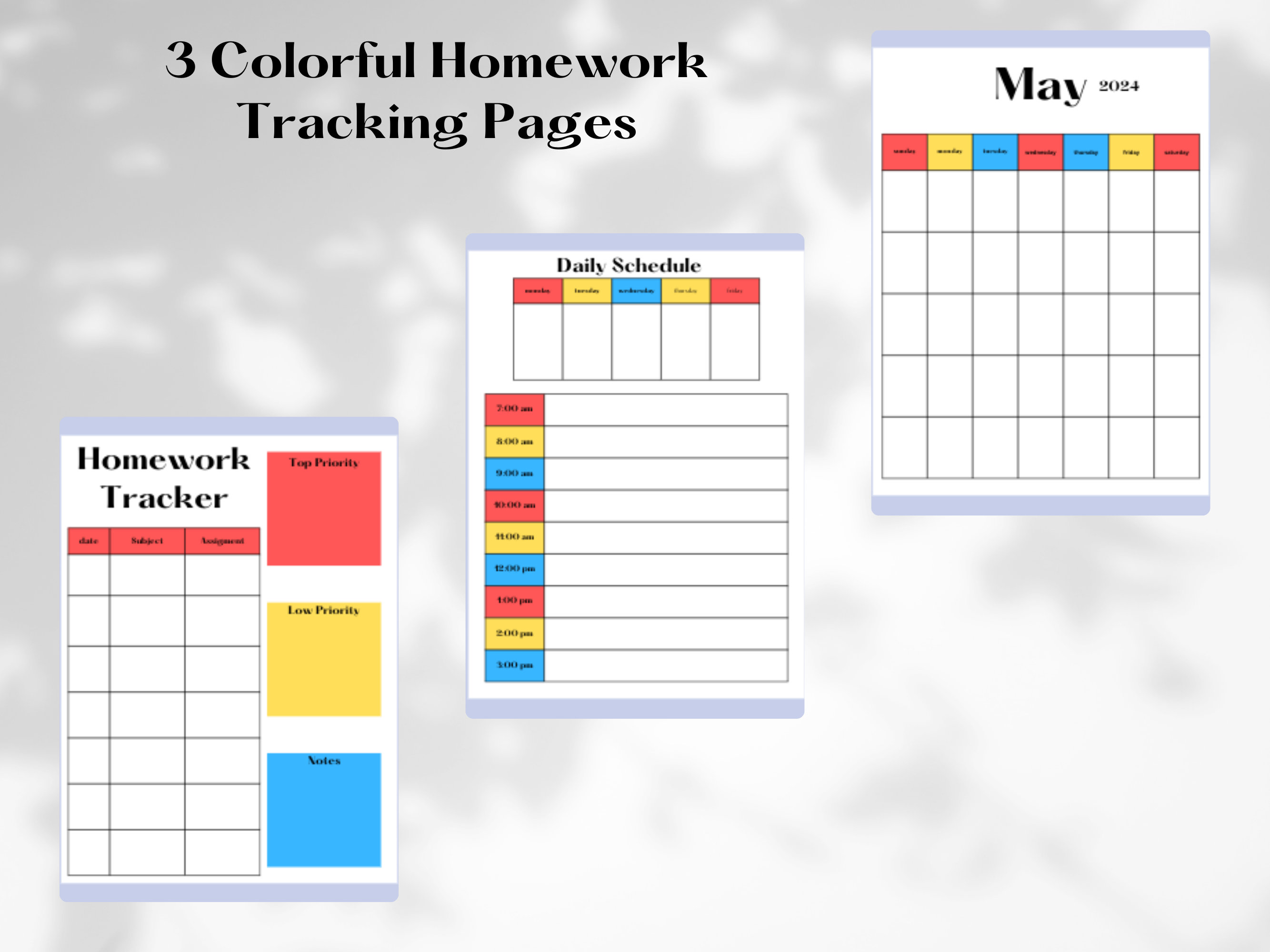 Pastel Rainbow Homework Tracker - Calendar - 3 Page Digital Download - Etsy