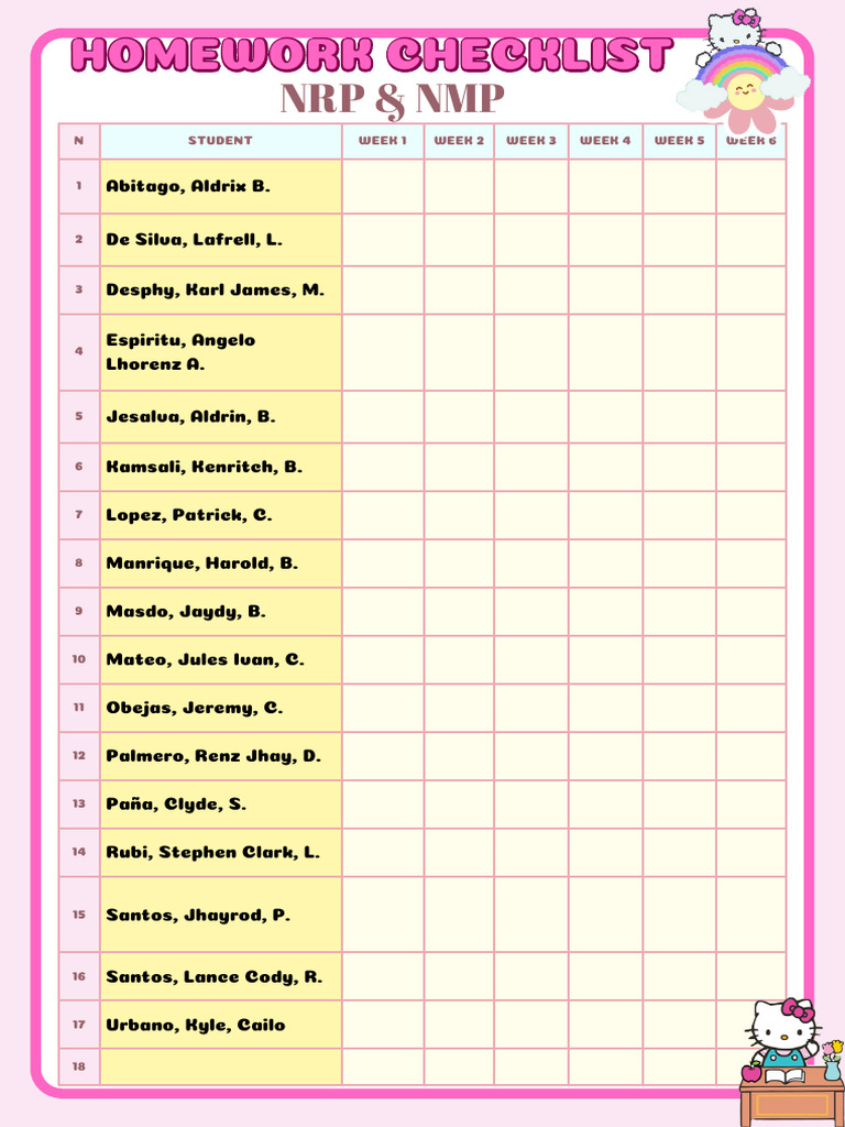Homework Checklist Document in Pastel Pink Yellow Cute Style | PDF