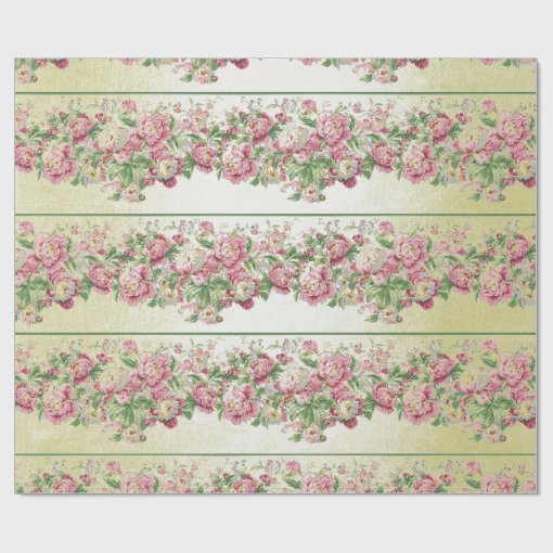 Floral Mint Green Roses Pink Pearly Pastel Vip Wrapping Paper | Zazzle