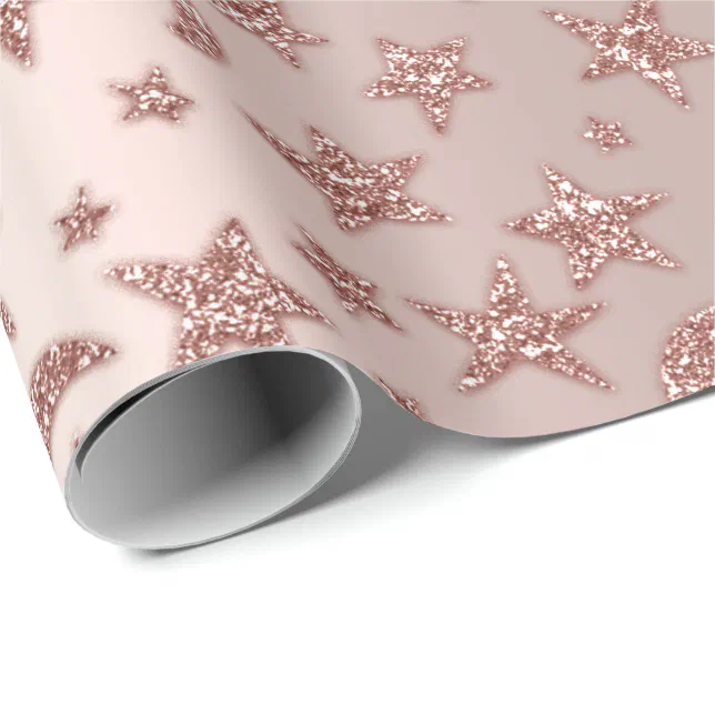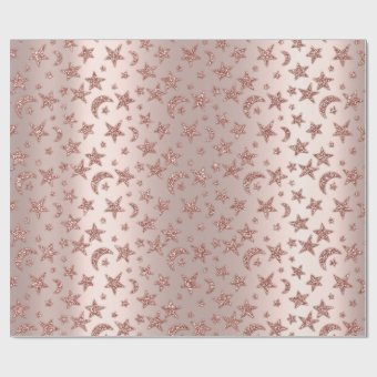 Stars Moon Skinny Rose Blush Sparkly Pastel VIP Wrapping Paper | Zazzle