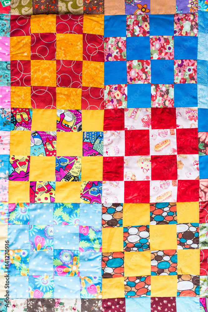 Part of symmetric geometry pattern color patchwork quilt as background ...