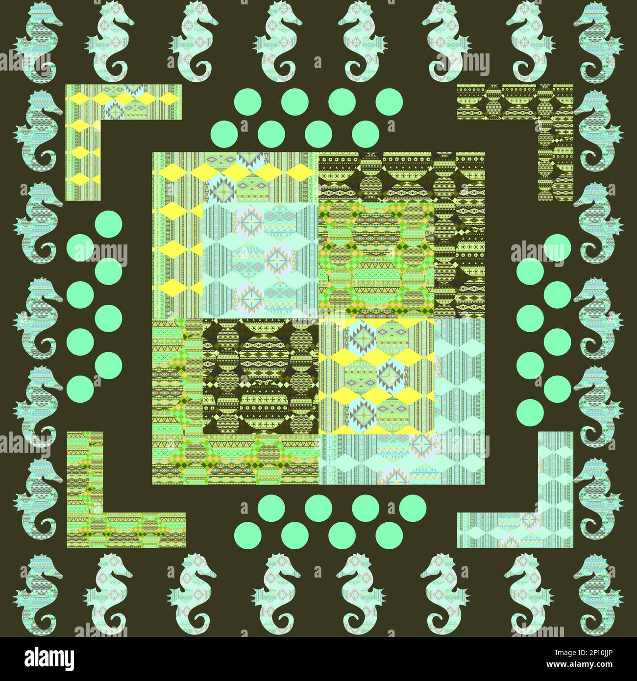 Patchwork Quilt Design Elementseamless Pattern On A Square Background ...