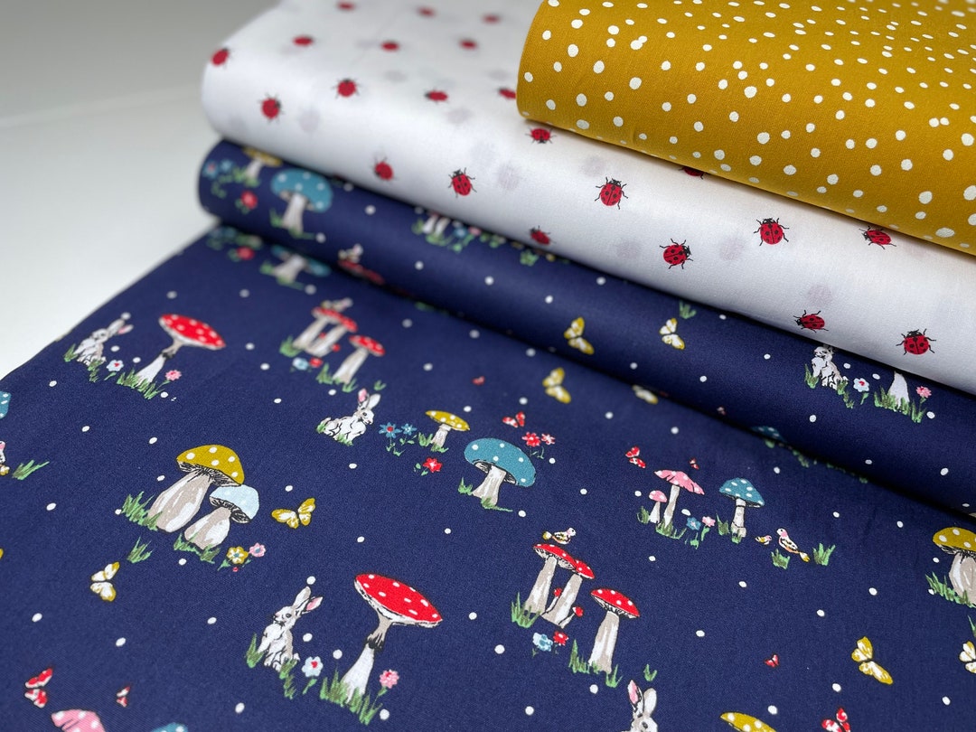 Cotton Fabric Patchwork Fly Agaric Lucky Ladybug Blue Red Children's ...