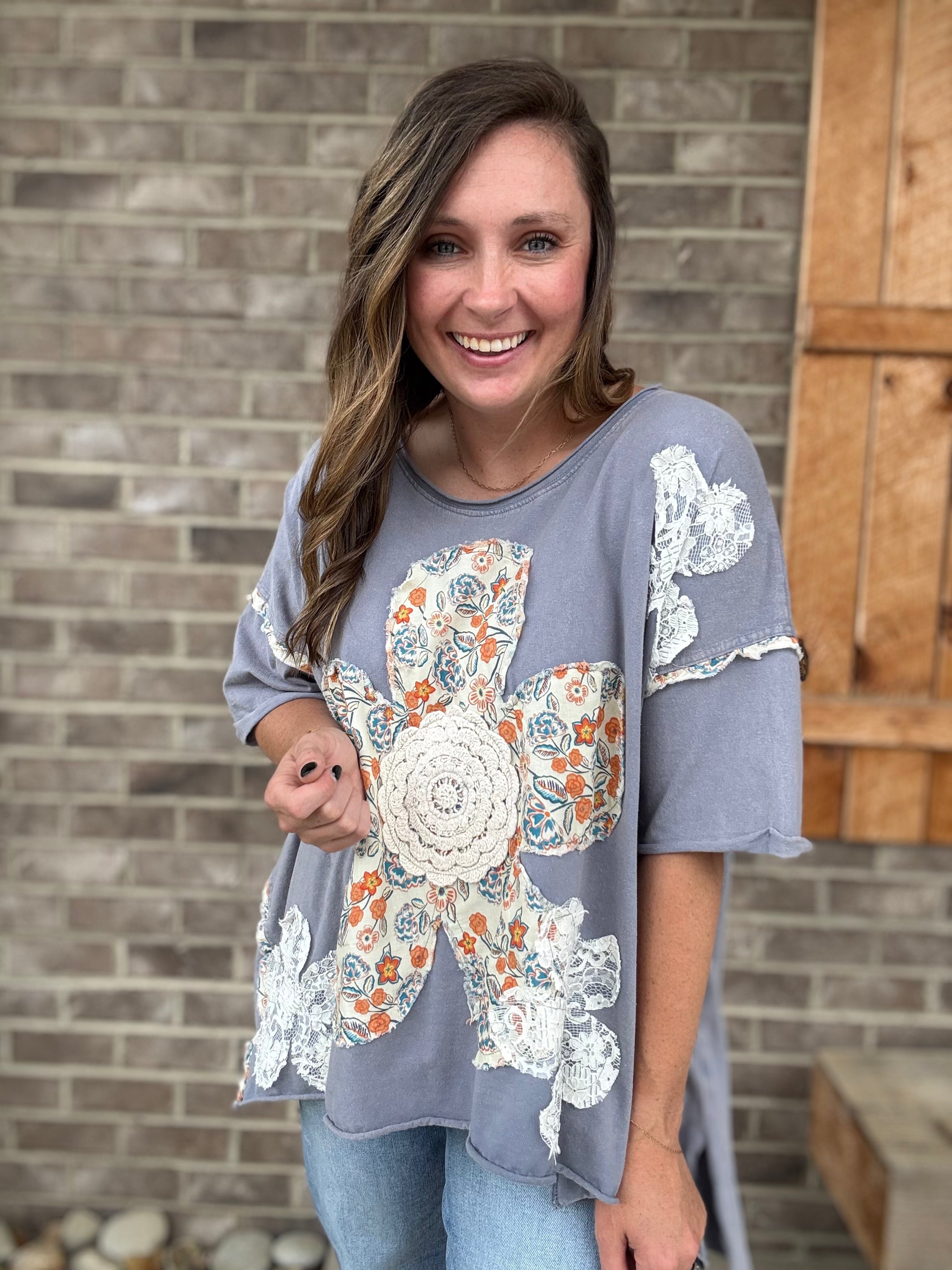 Steel Blue Patchwork Oversized Tee – by BlueVelvet – Brumleys Expressions