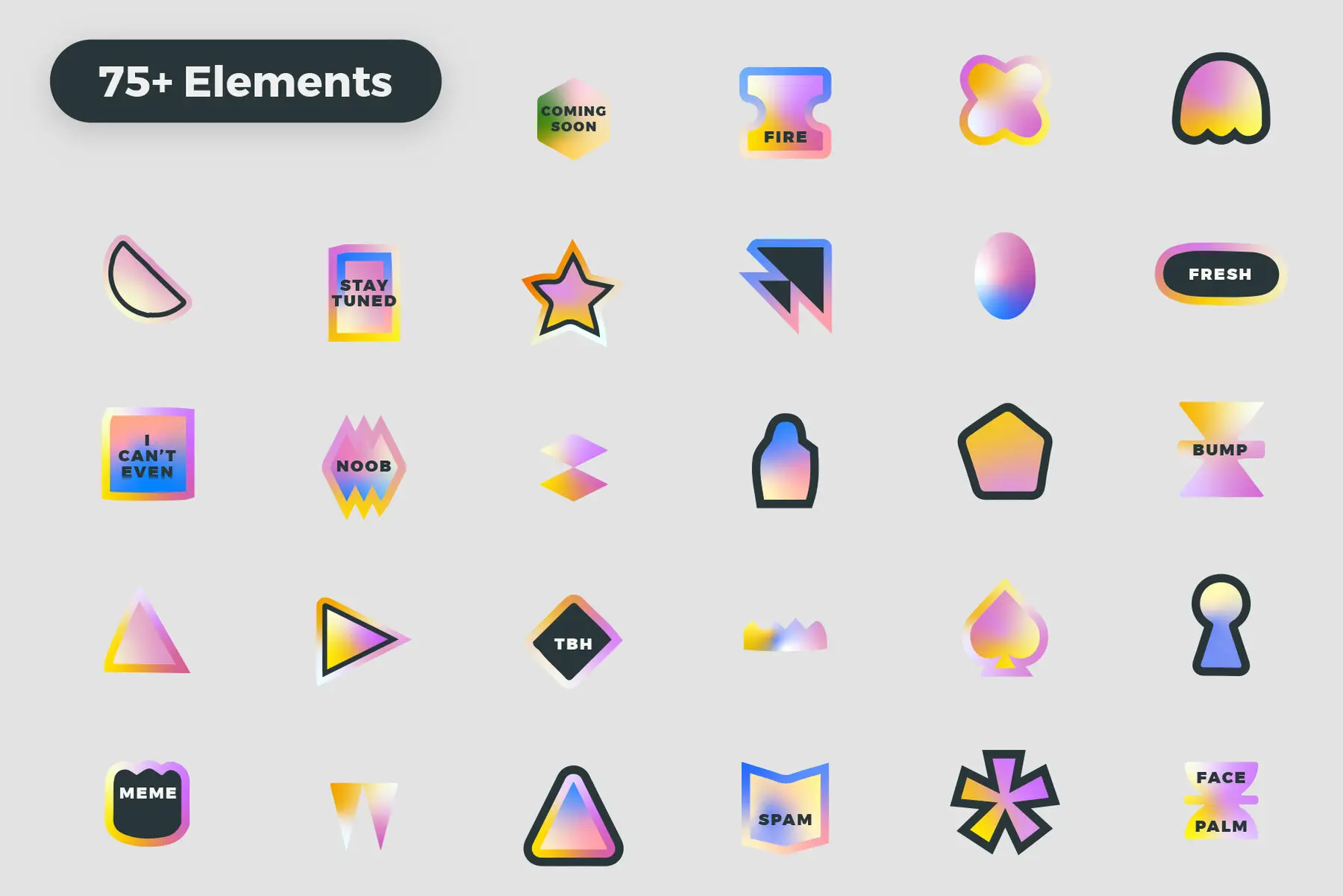 Gradient Sticker Bundle shape, Geometric shape sticker, holographic ...