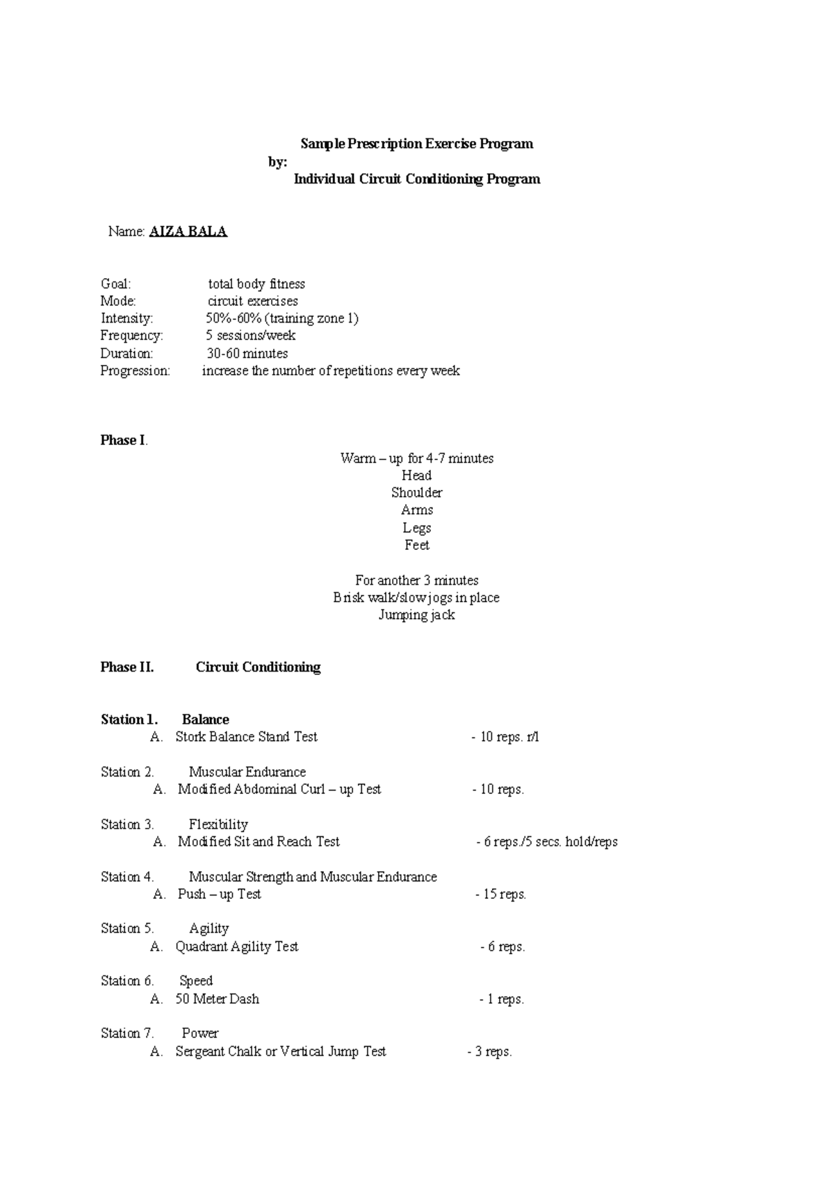 Pathfit 2 program - Sample Prescription Exercise Program by: Individual ...