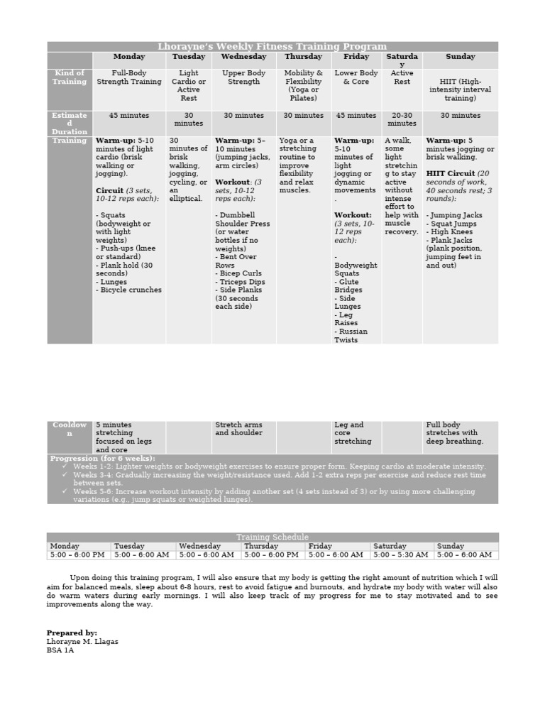 Fitness Program Training Plan Pathfit 2 1 1 - MY FITNESS PROGRAM ...