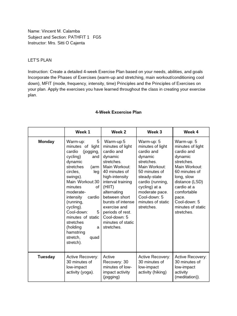 F.I.T - PATHFIT 2 – FITNESS PLAN Complete Name ...