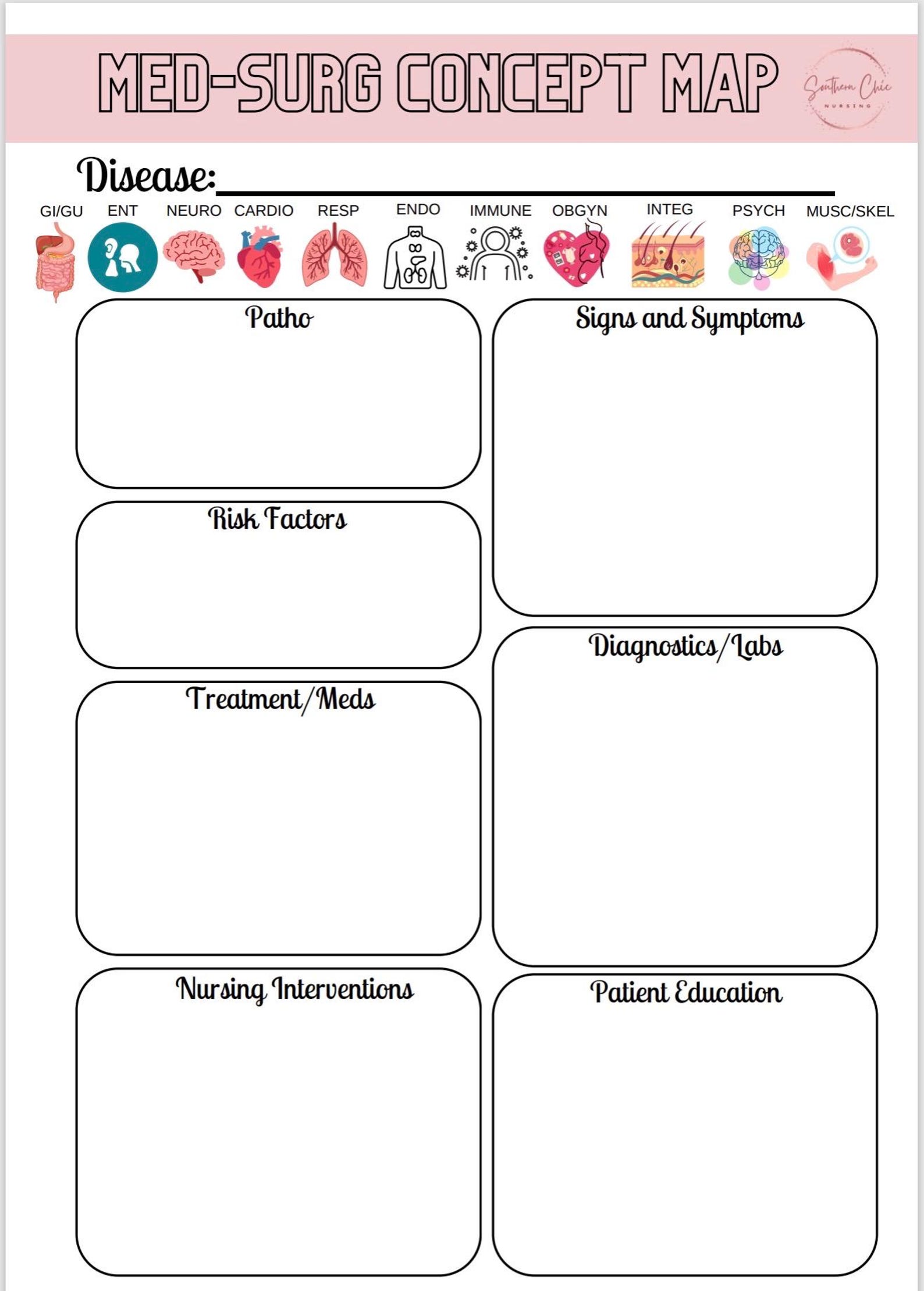Printable Nursing Student Pathophysiology Template / Disease & Patho ...