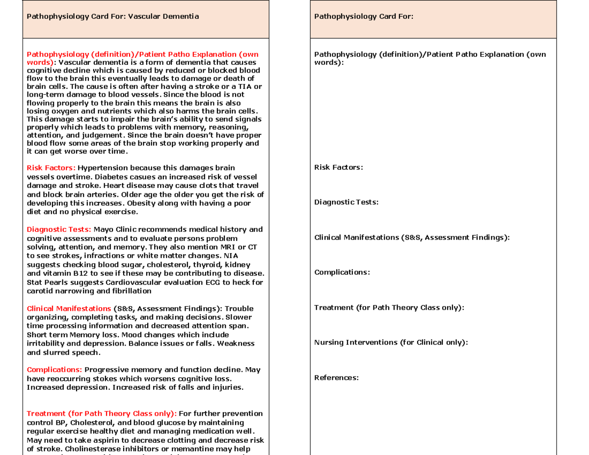 Pathophysiology Card: Vascular Dementia Overview & Management (Patho ...