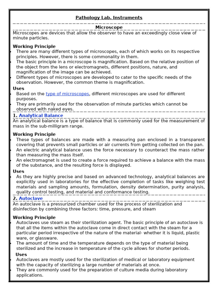 PATHOLOGY LAB INSTRUMENTS THIER USES / / PATHOLOGY EQUIPMENT ...