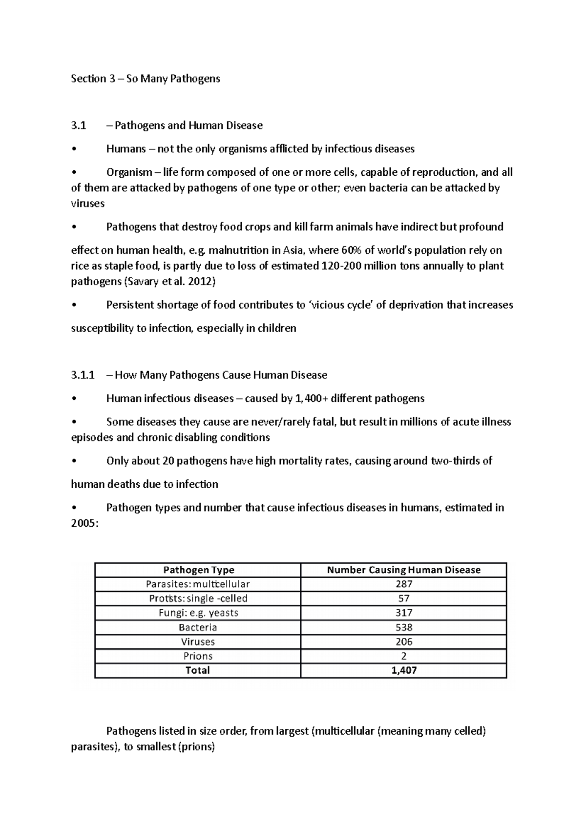 Section 3 – So Many Pathogens - part 1 - Section 3 – So Many Pathogens ...