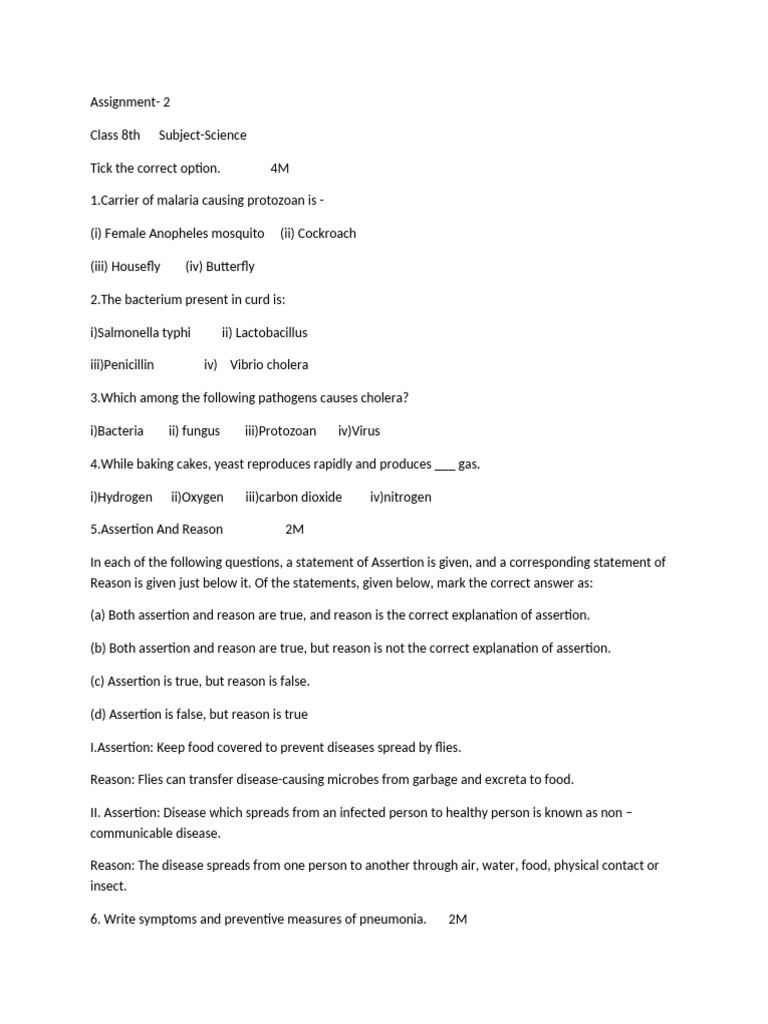 Class 8 Science and Math Assignments | PDF | Pathogen | Microorganism