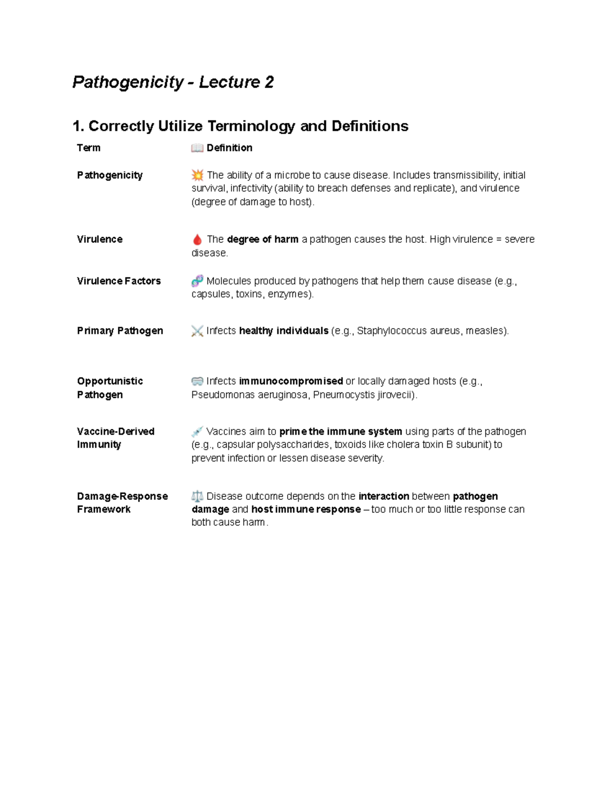 Micro 2 - Pathogenicity Lecture 2: Terminology & Mechanisms - Studocu