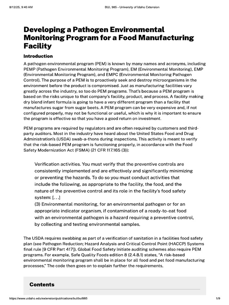 Deveoping Pathogen Environmental Monitoring Program | PDF