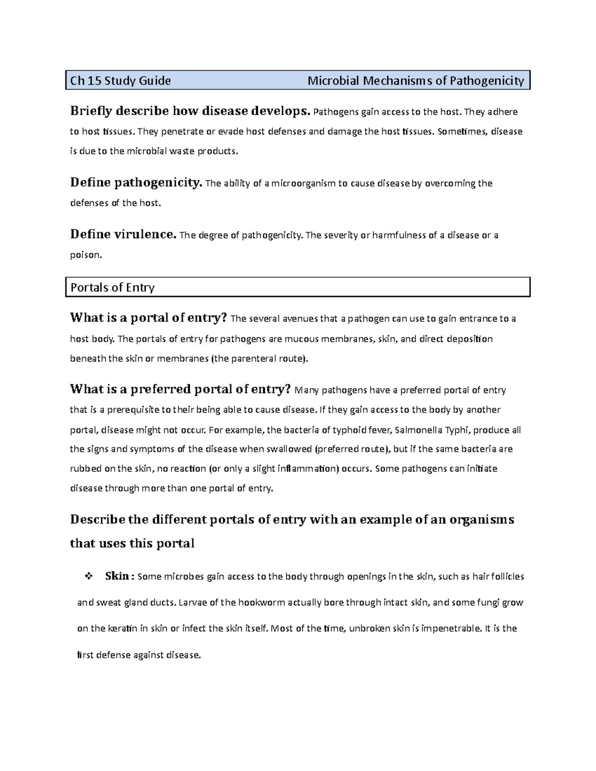 Ch 15 Study Guide Microbial Mechanisms of Pathogenicity - Pathogens ...